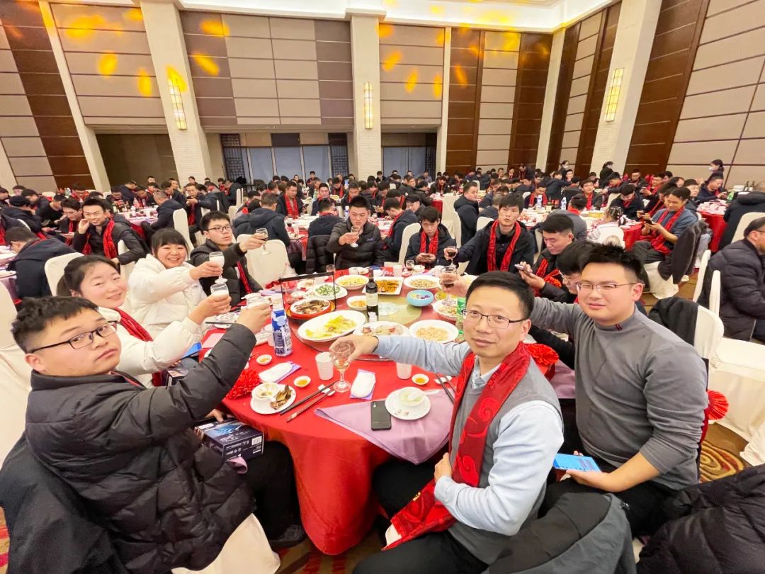 金牛俯首辞旧岁,瑞虎腾跃迎新春。2022年1月27日,金纬机械海宁厂区在海州大饭店隆重举办了2022年迎新春答谢晚宴。来自各公司股东、董事会成员、专业公司总经理、部分客户和供应商代表、合作伙伴、部分优秀员工家属近300人欢聚一堂,举杯同庆,共享2021斐然业绩,展望2022新辉煌。
