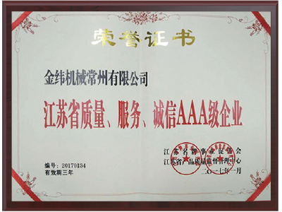 江苏省质量 服务 诚信 AAA级企业